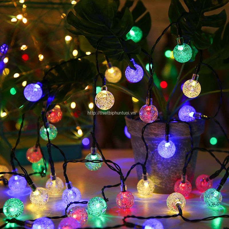 Dây đèn LED năng lượng mặt trời bóng pha lê 8 kiểu nháy không thấm nước, đèn trang trí sân vườn, bancon, lối đi
