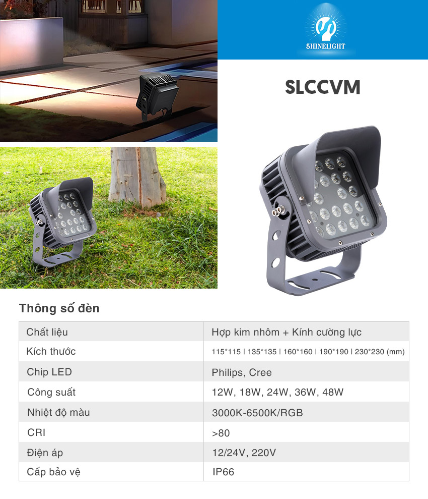 Định hướng phát triển của ShineLight đó là đưa tới khách hàng những sản phẩm đèn led chất lượng. Sản phẩm đèn LED rọi sân vườn SLCCVM 18w, 24w, 36w, 48w, 72w cũng là một sản phẩm trong số đó.