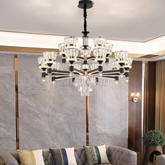 - Chất liệu sang trọng: Kết hợp giữa thép, acrylic và pha lê.