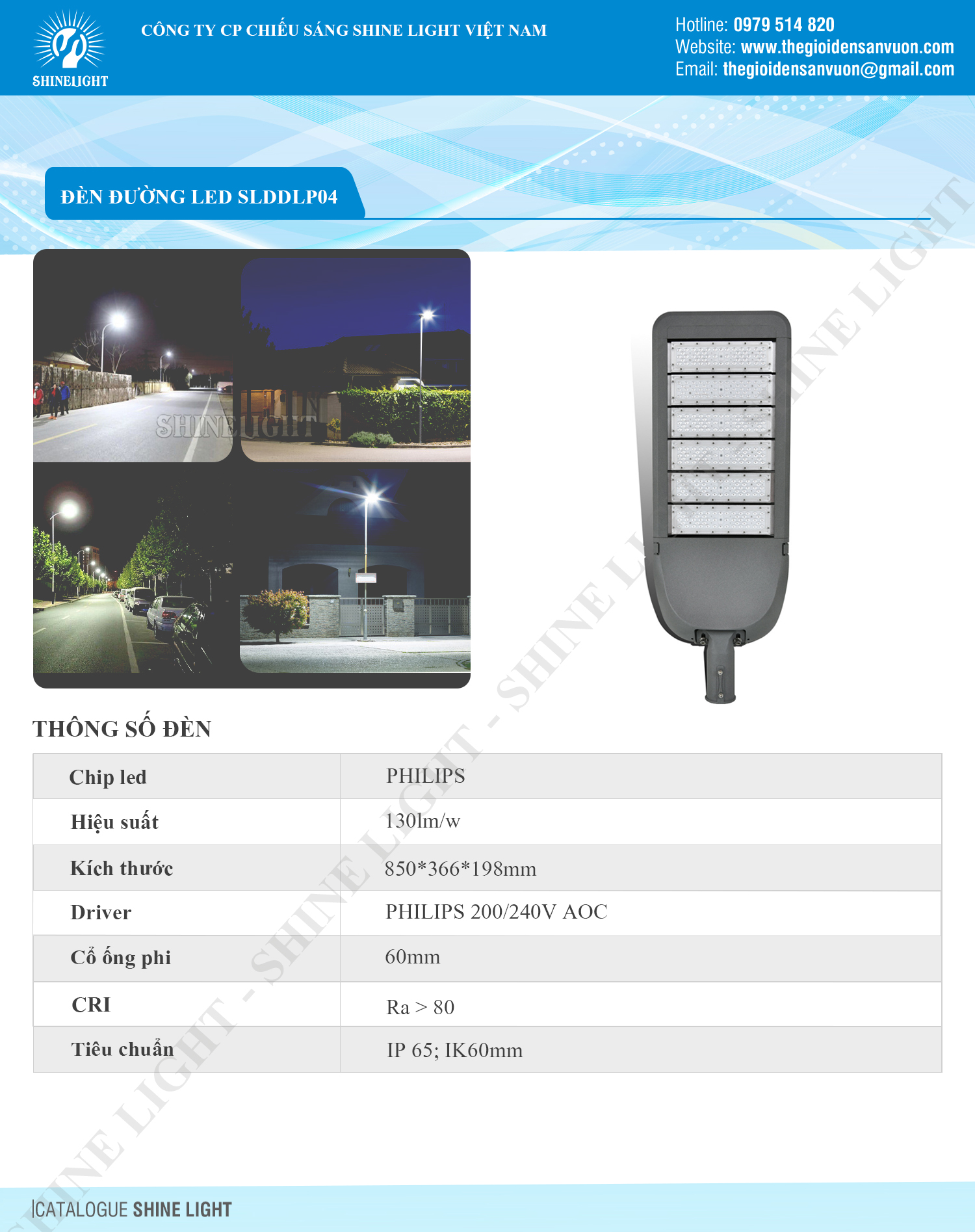 Trong các hệ thống chiếu sáng công cộng hiện nay, lựa chọn thiết bị vừa tiết kiệm năng lượng, vừa đảm bảo độ bền lâu dài là yếu tố then chốt. Đèn đường LED SLDDLP04 chính là giải pháp tối ưu cho các công trình chiếu sáng ngoài trời nhờ ứng dụng công nghệ hiện đại từ Philips, thiết kế chắc chắn và hiệu quả chiếu sáng vượt trội.