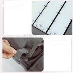 Với kích thước 850 x 366 x 198mm, thân đèn được đúc từ hợp kim nhôm cao cấp, đảm bảo khả năng tản nhiệt tốt và độ bền cơ học cao. Sản phẩm đạt chuẩn chống bụi và chống nước IP65, kết hợp khả năng chống va đập IK06, giúp đèn hoạt động ổn định trong mọi điều kiện thời tiết – từ nắng gắt đến mưa lớn.