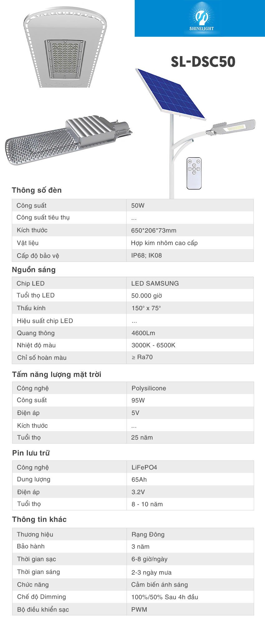 Giới Thiệu Về Đèn Đường Năng Lượng Mặt Trời SL-DSC50