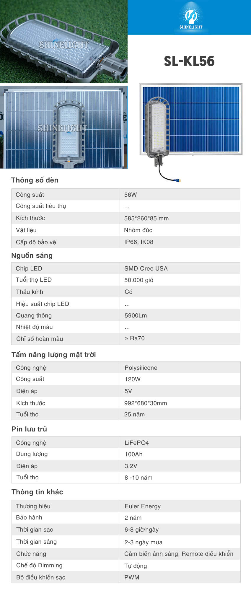 Trong thời đại hiện đại, nhu cầu sử dụng nguồn năng lượng hiệu quả và bền vững ngày càng trở nên quan trọng. Trong lĩnh vực chiếu sáng đường phố, đèn đường năng lượng mặt trời SL-KL56 đang trở thành một giải pháp xuất sắc, giúp tối ưu hóa việc sử dụng năng lượng và giảm tác động tiêu cực lên môi trường.