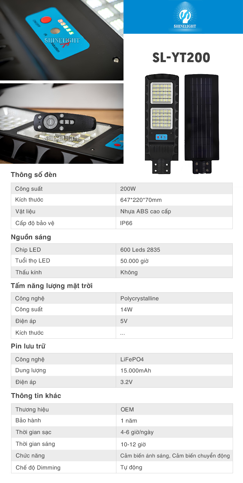 Giới Thiệu Về Đèn Đường Năng Lượng Mặt Trời SL-YT200