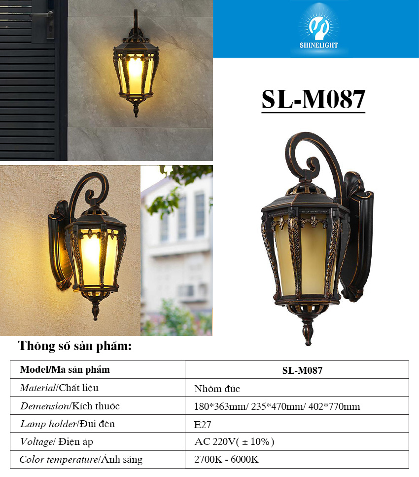 Đèn gắn tường cổ điển SL-M087 luôn là sự lựa chọn hoàn hảo để tô điểm thêm vẻ đẹp cổ điển cho không gian sống hiện đại. Với thiết kế tinh tế, các sản phẩm đèn gắn tường cổ điển mang đến vẻ đẹp trang nhã và quý phái cho ngôi nhà bạn.