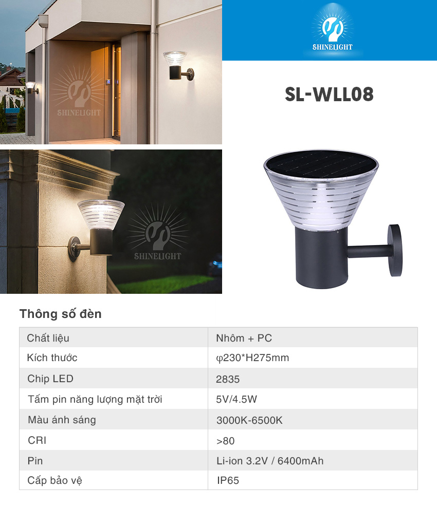 Mô tả sản phẩm Đèn gắn tường năng lượng mặt trời SL-WLL08