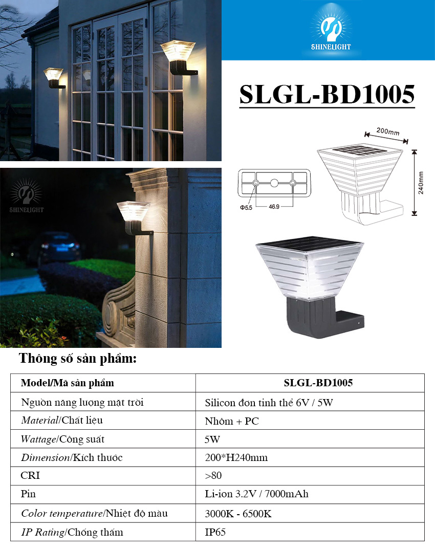 Mô tả sản phẩm Đèn gắn tường năng lượng mặt trời SLGL-BD1005