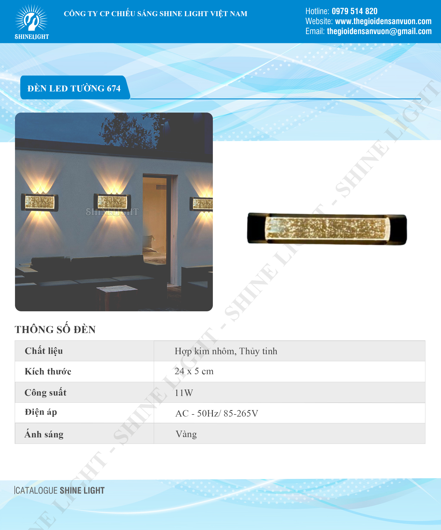 Với kích thước 5 x 25 cm, đèn LED Tường 674 sở hữu kiểu dáng nhỏ gọn nhưng vẫn tạo điểm nhấn thẩm mỹ sang trọng. Thiết kế mỏng, dài và thanh thoát giúp dễ dàng lắp đặt trên nhiều bề mặt tường mà không làm mất đi vẻ đẹp tổng thể của không gian.