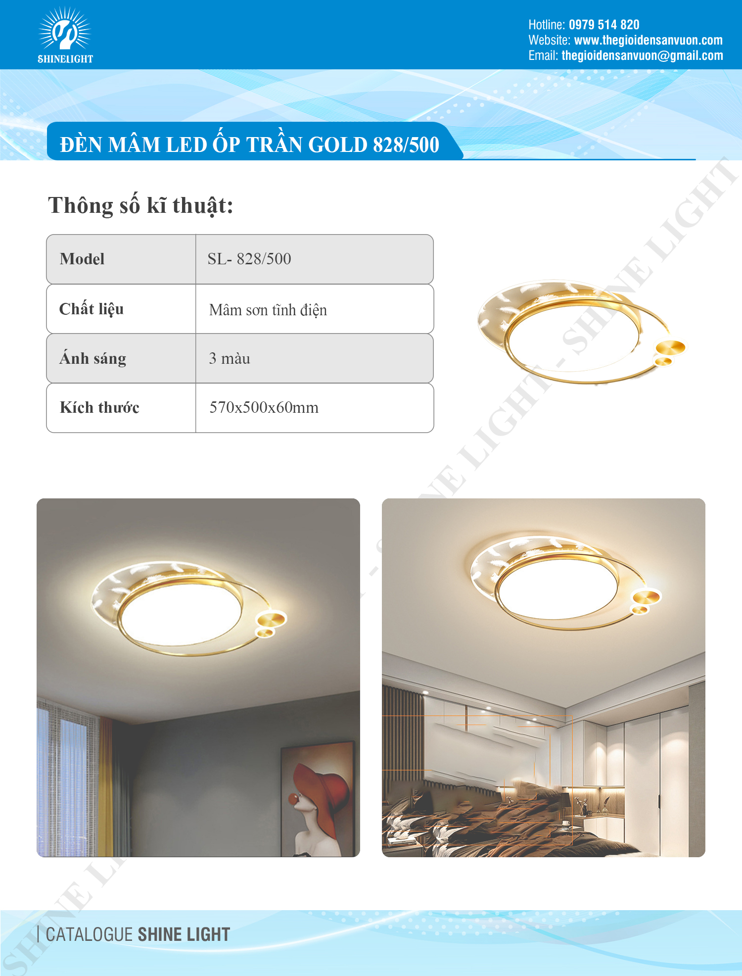 Với kích thước 570x500x60mm, 828/500 là mẫu đèn ốp trần sở hữu hình dáng cân đối, hài hòa, giúp tôn lên nét sang trọng cho trần nhà mà không gây rối mắt. Phù hợp với nhiều không gian như: