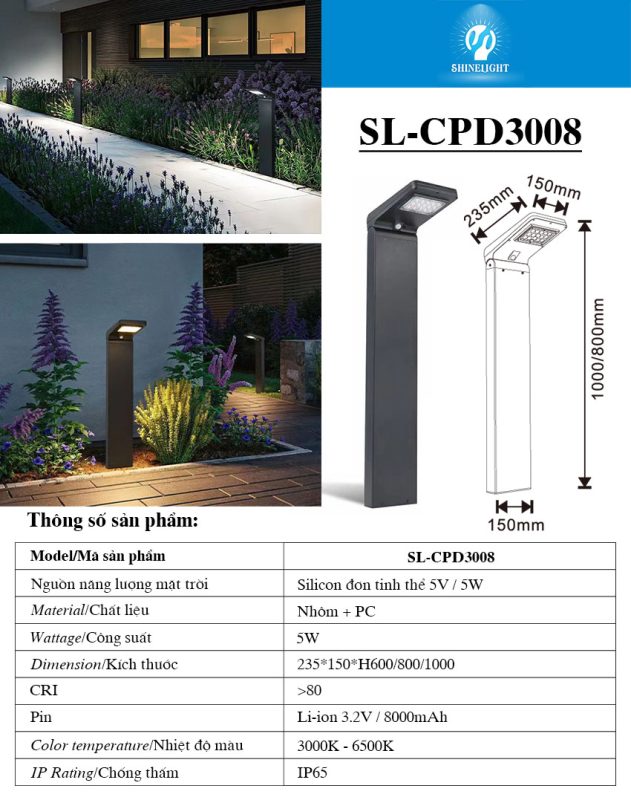 – Đèn nấm sân vườn năng lượng mặt trời SL-CPD3008 là dòng đèn NLMT cao cấp, sử dụng năng lượng mặt trời để phát sáng thông qua cơ chế chuyển hóa năng lượng từ ánh sáng mặt trời thành điện năng.