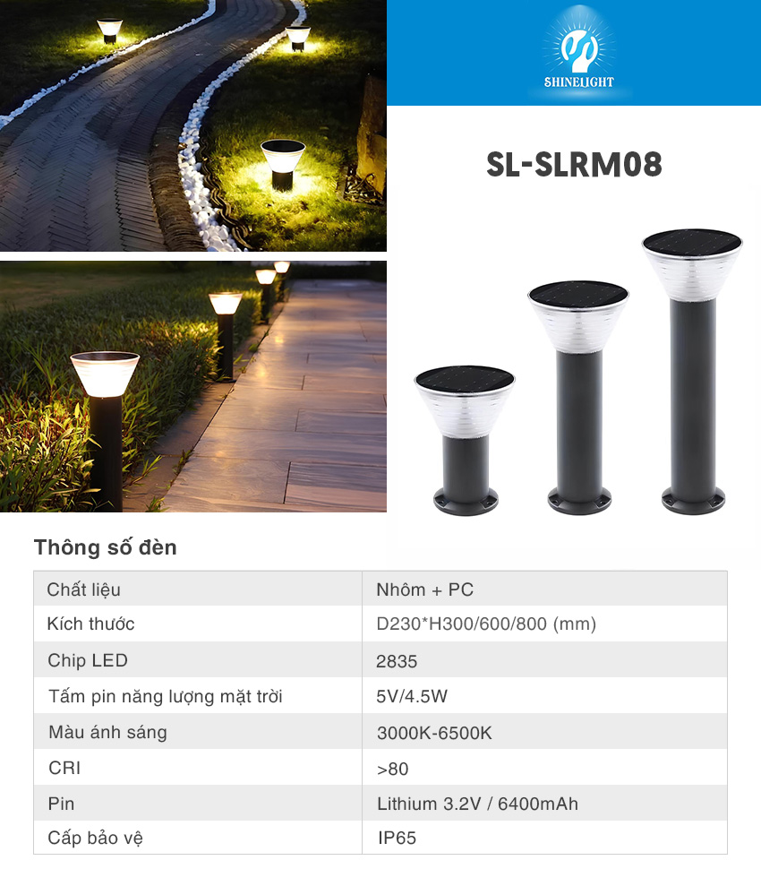 – Đèn nấm sân vườn năng lượng mặt trời SL-SLRM08 là dòng đèn NLMT cao cấp, sử dụng năng lượng mặt trời để phát sáng thông qua cơ chế chuyển hóa năng lượng từ ánh sáng mặt trời thành điện năng.