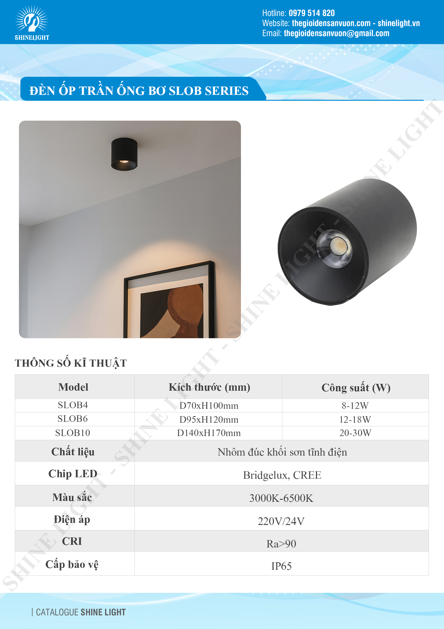 Thông số kỹ thuật đèn ốp trần ống bơ SLOB Series