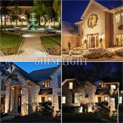 Chiếu sáng cảnh quan tại resort, khu nghỉ dưỡng: Kết hợp đèn rọi cột với cây xanh, mảng tường đá hoặc lối đi giúp không gian trở nên lung linh, thư giãn, tạo trải nghiệm thị giác cao cấp cho khách hàng.