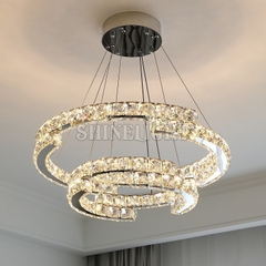1. Thiết kế 2 tầng sang trọng – Tạo chiều sâu cho không gianVới đường kính hai vòng đèn D600 + D800mm, ART419-68 mang lại cảm giác cân đối và nổi bật trong các không gian trần cao, rộng như: phòng khách biệt thự, sảnh khách sạn, khu vực tiếp tân, nhà hàng cao cấp. Thiết kế dạng vòng xoắn hiện đại tạo ra hiệu ứng chuyển động mềm mại khi ánh sáng lan tỏa, mang lại cảm giác sống động và cuốn hút. 2. Chất liệu cao cấp – Bền đẹp theo thời gianSản phẩm được gia công từ inox mạ sáng cao cấp, không chỉ chắc chắn mà còn có khả năng chống gỉ sét, chịu lực tốt. Những viên phale cắt góc tinh xảo được bố trí đồng đều giúp khúc xạ ánh sáng mạnh mẽ, tạo nên hiệu ứng lung linh, lộng lẫy mỗi khi đèn được bật sáng. Dù ở ban ngày hay ban đêm, chiếc đèn vẫn là một chi tiết nội thất nổi bật. 3. Ánh sáng 3 chế độ – Linh hoạt theo từng khoảnh khắcĐèn được trang bị chip LED SMD hiện đại, cho khả năng chuyển đổi giữa ba tông ánh sáng: