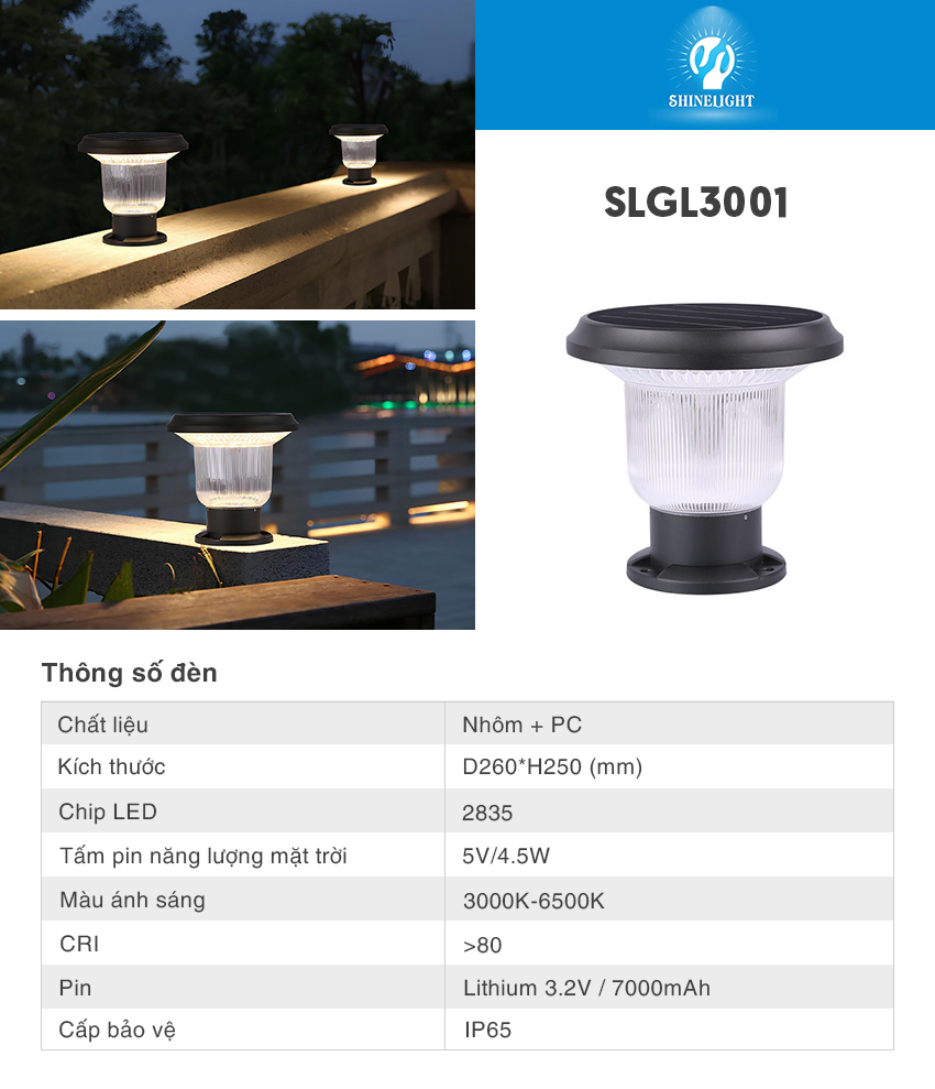 Mô tả sản phẩm Đèn trụ cổng năng lượng mặt trời SLGL3001