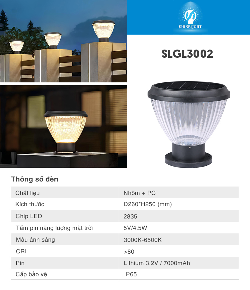 Mô tả sản phẩm Đèn trụ cổng năng lượng mặt trời SLGL3002