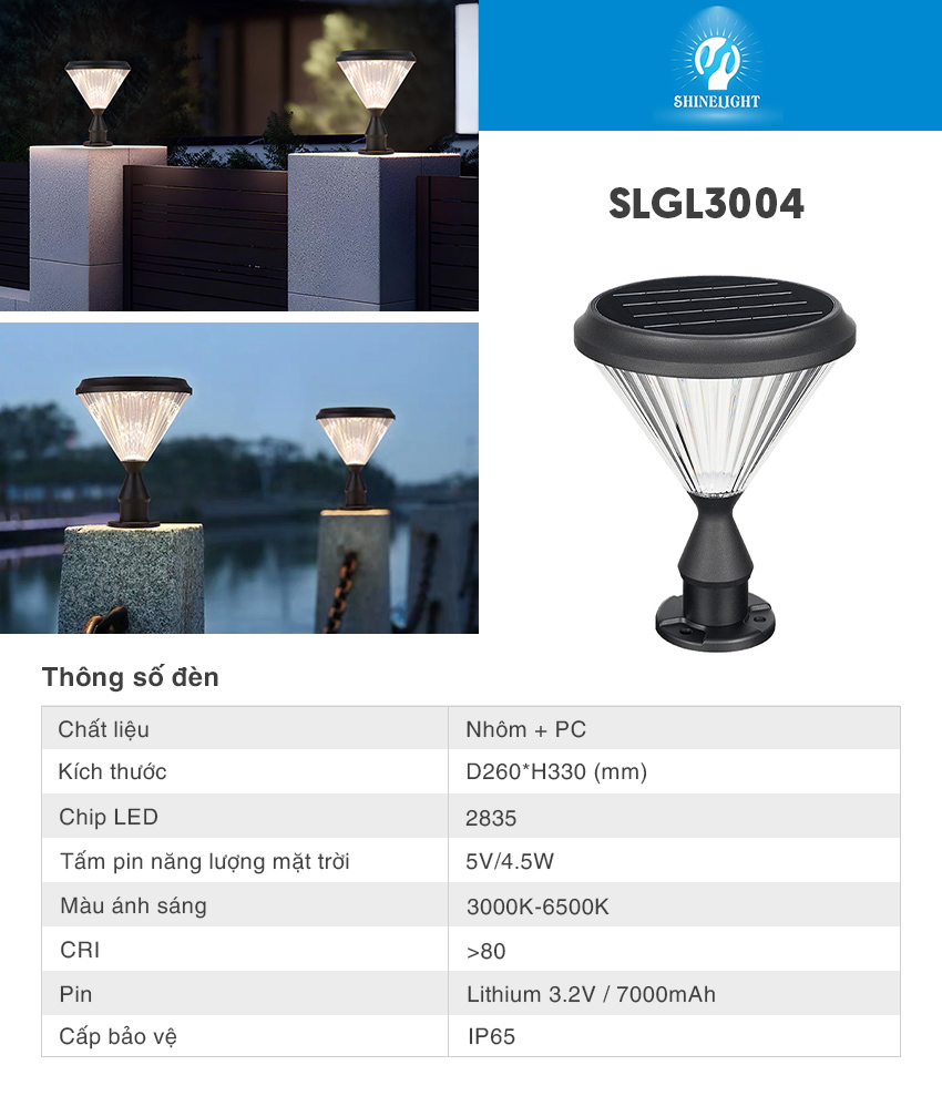 Mô tả sản phẩm Đèn trụ cổng năng lượng mặt trời SLGL3004