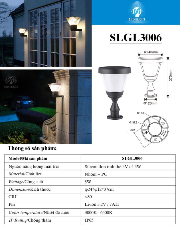 Mô tả sản phẩm Đèn trụ cổng năng lượng mặt trời SLGL3006
