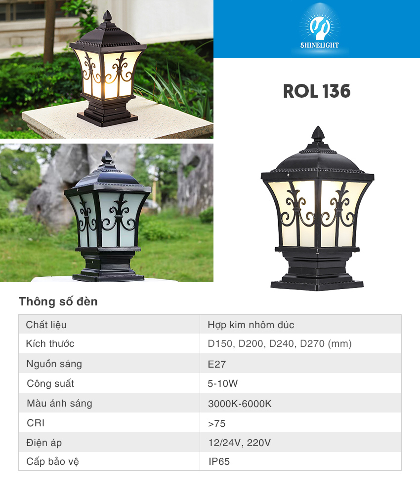 Đèn trụ cổng ROL 136