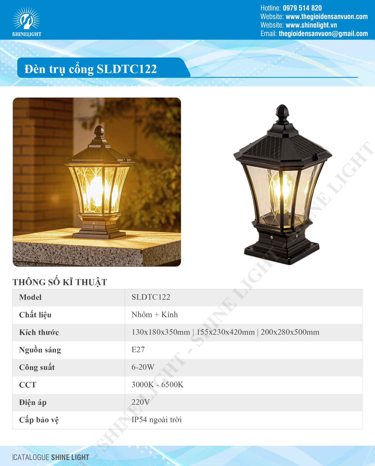 SL-DTC122 không chỉ là chiếc đèn chiếu sáng, mà còn là chi tiết hoàn thiện kiến trúc cổng. Với thiết kế cổ điển thanh lịch, ánh sáng thân thiện và độ bền cao, sản phẩm là lựa chọn hoàn hảo cho biệt thự, nhà phố và khu nghỉ dưỡng.